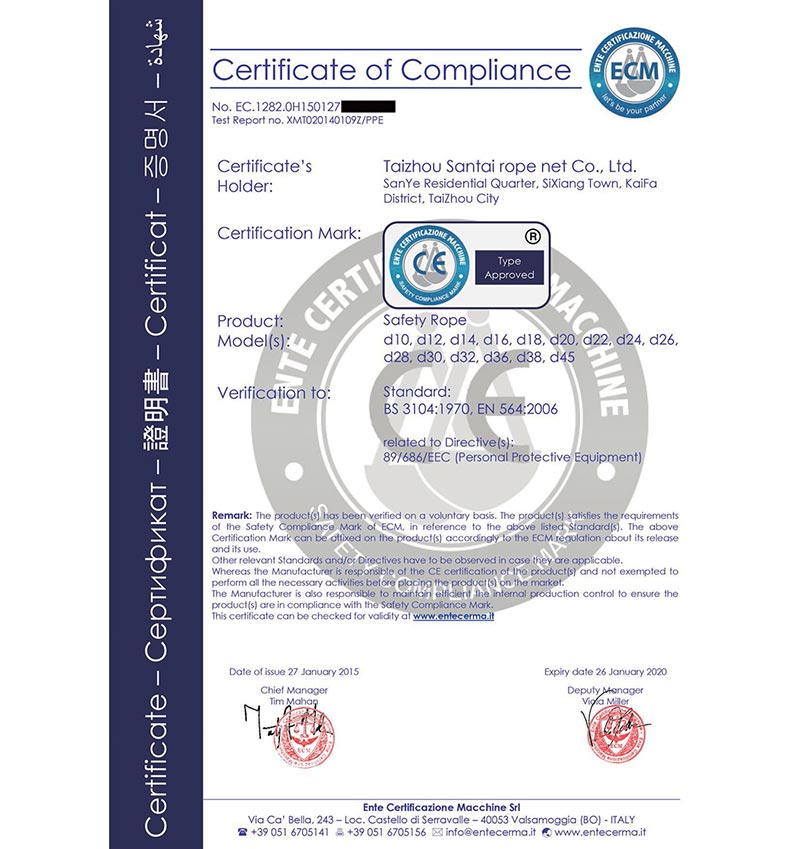 泰州市三泰健康科技有限公司(原 泰州市三泰繩網(wǎng)有限公司),本公司成立于1988年12月22日,至今近30年的生產(chǎn)歷程。多年來的生產(chǎn)經(jīng)驗(yàn),加之我們不斷的創(chuàng)新,已經(jīng)建設(shè)成為集研制、開發(fā)、生產(chǎn)、銷售為一體的龍頭企業(yè)。公司生產(chǎn)線由捻線車間、制繩車間、織網(wǎng)車間、織帶車間、織(絞)繩車間、安全網(wǎng)組裝車間、安全帶組裝車間、檢驗(yàn)室等組成。企業(yè)現(xiàn)有職工155人,企業(yè)管理人員6名,市場研發(fā)人員8名,專業(yè)質(zhì)檢人員2名,......